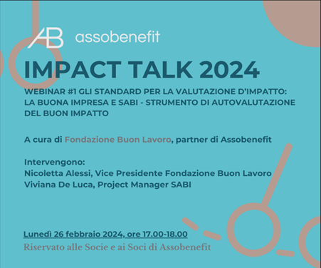 Gli altri due webinar del ciclo Impact Talk sono previsti il 4 marzo (su B Impact Assessment) e il 18 marzo (Q/A e check finale sulla Relazione d’impatto).
